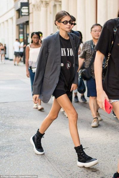 A fresh way to wear them is with t-shirts, blazers, and sneakers. LOVE how Kaia Gerber is wearing them below!